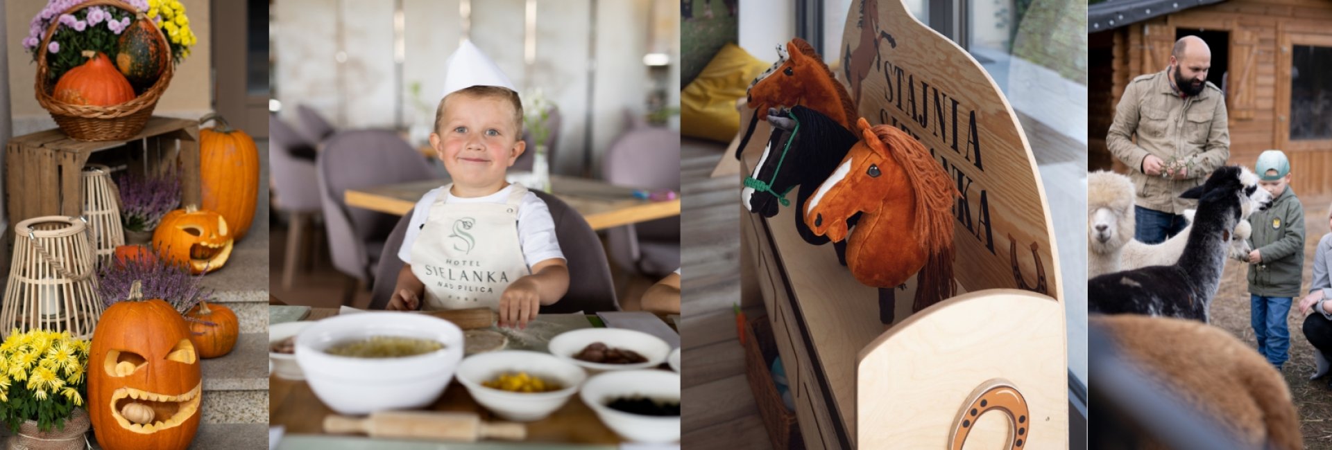 - Warsztaty i animacje dla dzieci, m.in. dekorowanie dyń, konkursy, zabawy z animatorami, warsztaty kulinarne, zwiedzanie stajni